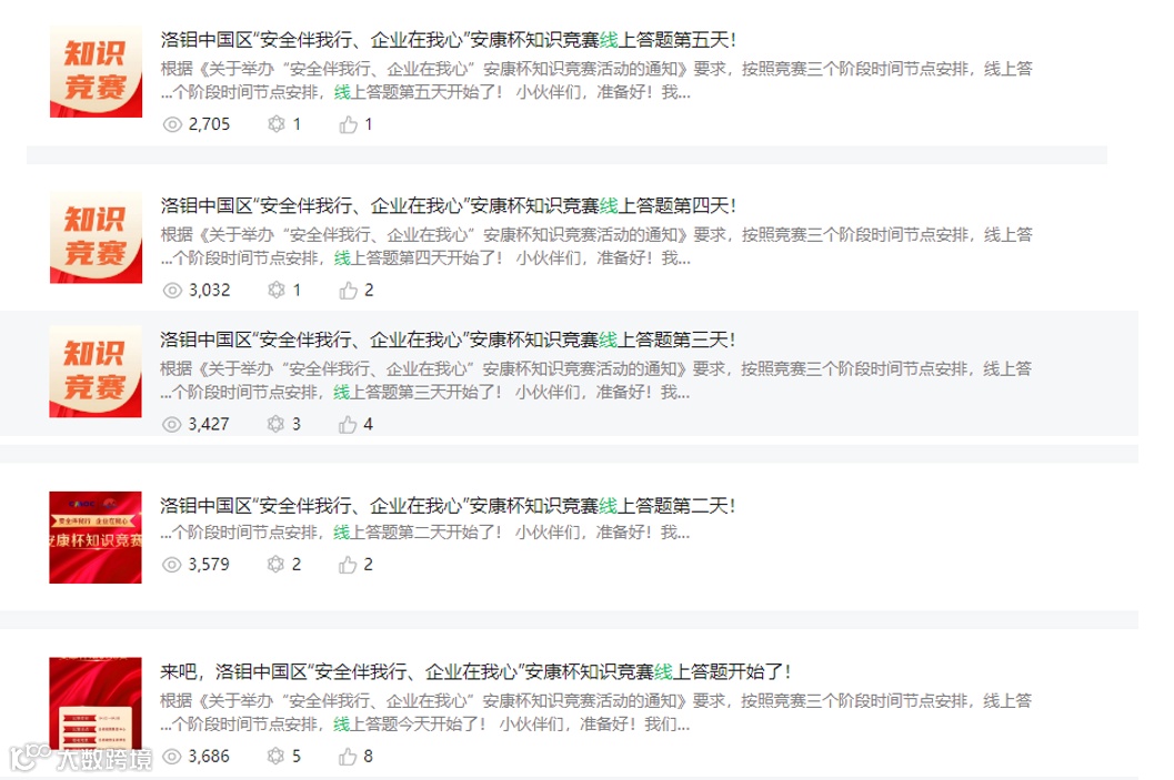 自安全月吹响“集结号”、发出“动员令”以来,集团党委紧抓重点,制定活动实施方案,开展一系列内涵丰富、形式多样、感染力强的安全宣教活动。线下坚持面向基层、面向现场、面向职工,组织“安康杯”知识竞赛;线上充分利用公众号、视频号等平台,全方位、多角度宣传“安全生产月”活动,线上线下同步发力,形成强大声势,持续营造人人关注安全、参与安全、抓好安全的浓厚氛围。