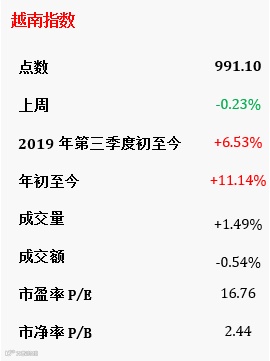 上周一越南股市开盘下跌,午盘越南外贸银行VCB、石油天然气GAS和Vin集团VIC等蓝筹股拉升市场。周二上升势头减弱,加上外资获利回吐压力使得越南指数大跌11点。随后两个交易日,在蓝筹股与房地产、工业园区地产板块的支撑下,市场上调。最后一个交易日,蓝筹股被抛售,外资净流出使得该指数下跌6点,收报991.1 点。上周越南指数结束了连续四周的上涨趋势。
