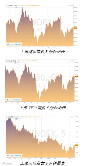 越南指数上周一放量上涨,周二快速大幅跌落但受到985-990点的支撑。下几个交易日市场复苏,985-990点继续发挥支撑的作用。上周交易结束该指数仍保住990点里程碑。