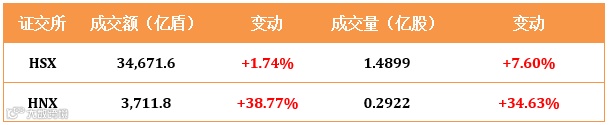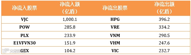 在胡志明证交所HOSE外资净流入270亿盾,河内证交所HNX外资净流出100.1亿盾。