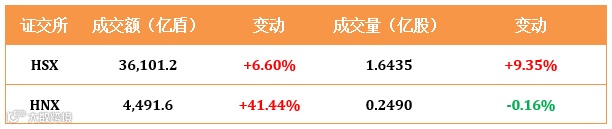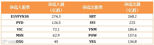 在胡志明证交所HOSE外资净流出577.1亿盾,河内证交所HNX外资净流出35.6亿盾。
