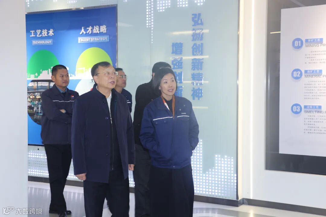 丁学全一行首先实地参观了钨业二公司生产线、自控室、钨精矿成品库。随后,参观了公司文化展厅,对公司在全球业务布局、发展历程、科技创新、社会责任等方面有了详细了解。