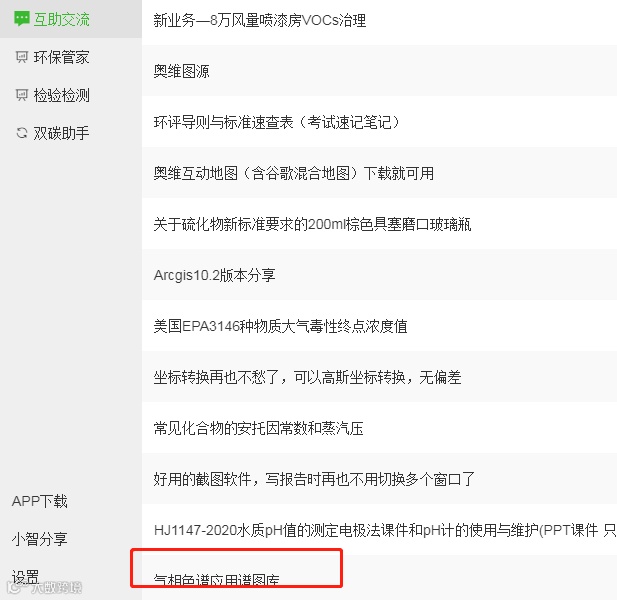 环保小智电脑版最新版(下载链接:https://gongshi.qsyhbgj.com/h5download?type=public(微信上打不开的话请复制到浏览器上打开))新上互助交流功能,有同行发布了气相色谱应用谱图库,欢迎电脑上使用小智查询联系(可以添加微信sthjb8问询)。缺少环境豆的也可以发好资料或者或业务赚环境豆哦