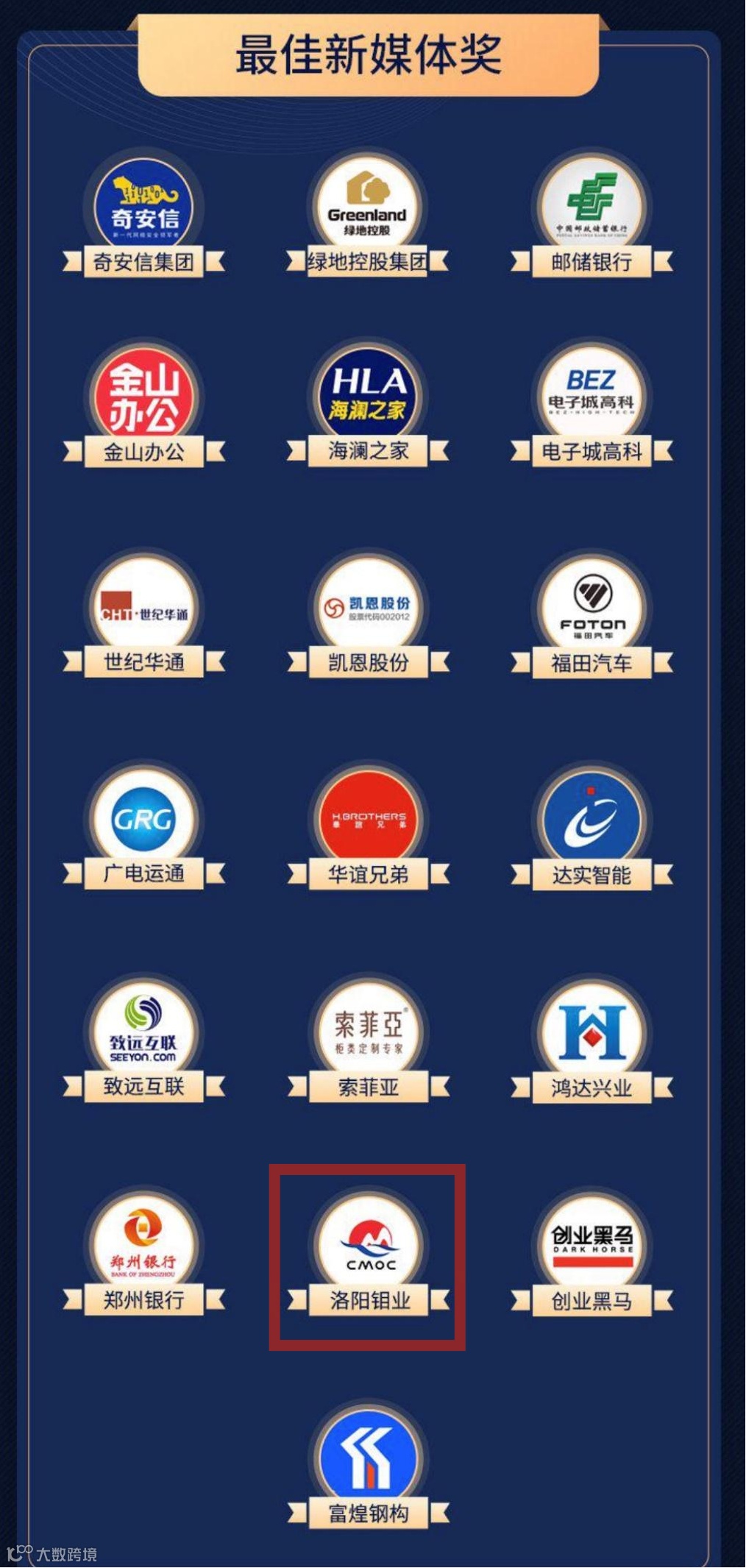 近日,同花顺企业号2020年度榜单正式发布,洛阳钼业荣获 “最佳新媒体奖”。作为国内最大的股票软件提供商和金融信息服务商之一,同花顺重点打造了同花顺企业号这一面向投资者的内容创作平台,已吸引32000多家企业、金融机构、机构媒体和自媒体入驻。此次榜单评选是基于企业号在同花顺平台内品牌影响力、账号及文章数据、日常运营维护、发布内容质量、调研投关活动等数据多维度评估,共选出“最佳投资者关系”、“港美股最具影响力”、“最佳新媒体”及“投关新锐”四大奖项。