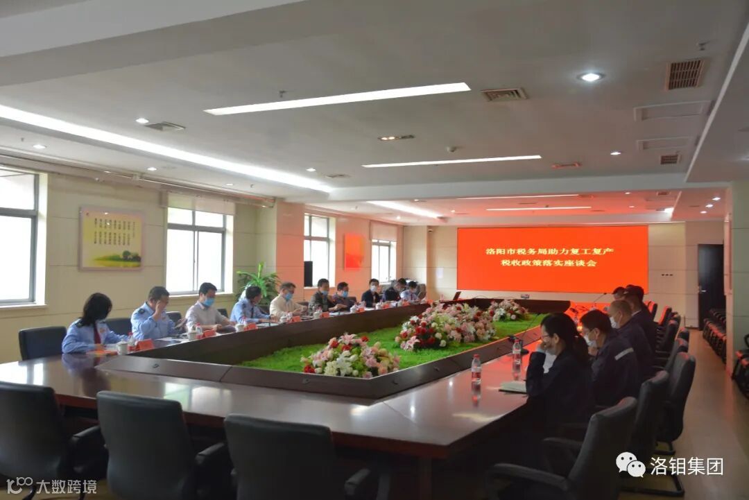 为确保疫情期间税收优惠政策落实到位、解决企业实际税收政策问题,5月13日上午,洛阳市税务局副局长王建新带领市税务局企业所得税科、个人所得税科相关人员,莅临集团公司调研指导工作,并在四楼会议室召开了“ 税收政策落实座谈会”。公司副总经理王争艳参加了会议。