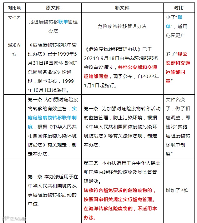 《危险废物转移管理办法》新旧逐条对比(点击链接打开后从底部阅读原文免费查看下载)