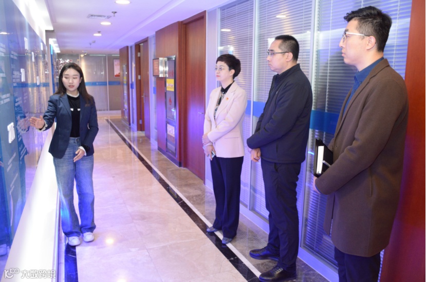 张学峰总经理一行参观了中心党建文化宣传栏、挂牌展示及路演大厅、山西省融资综合信用服务平台、中心大事记墙、托管交易柜台、员工风采展示墙,并对中心发展取得的成效表示高度赞赏。