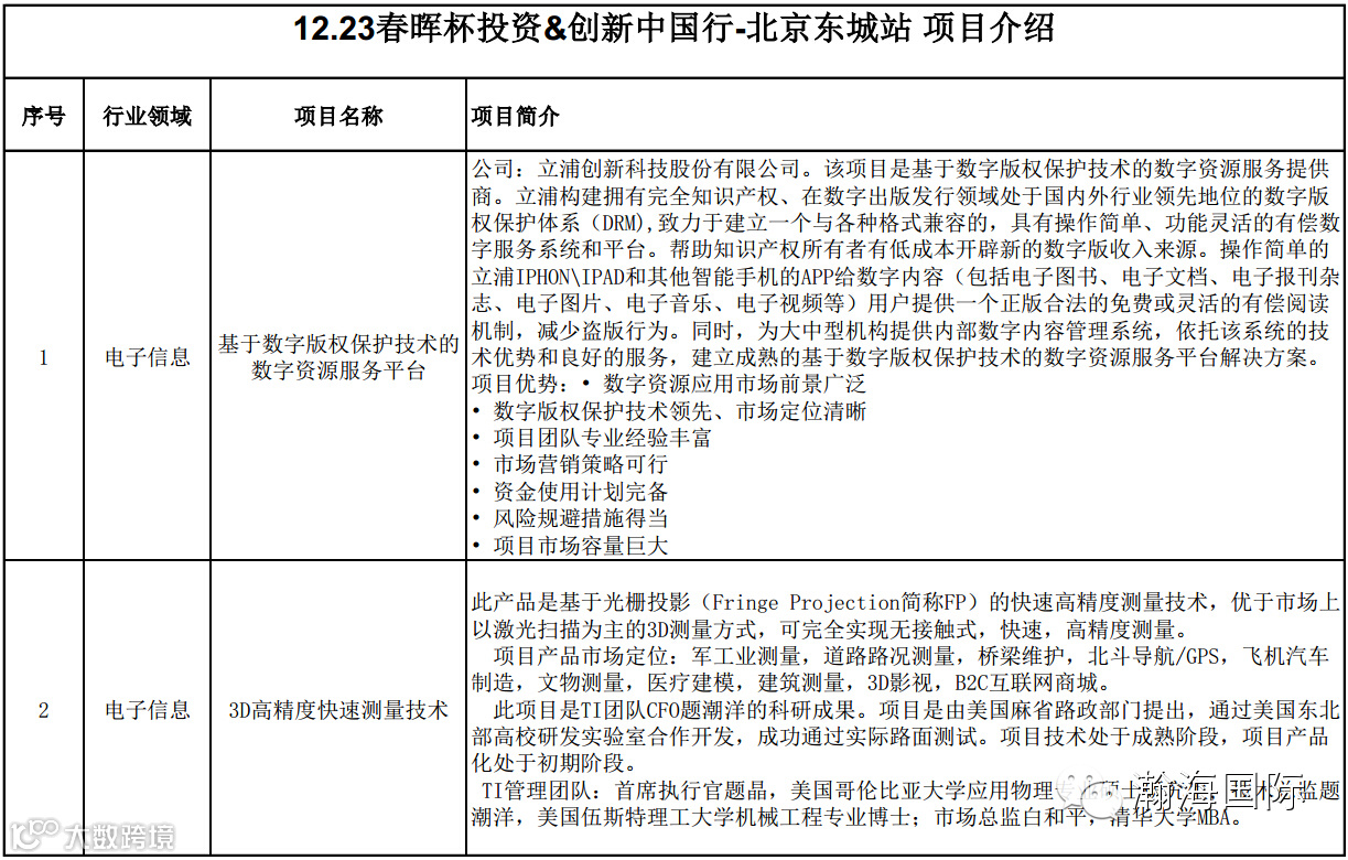 主办方将为您带来第九届“春晖杯”中国留学人员创新创业大赛获奖项目,聚焦电子信息、文化创意和生物医药等重点领域,寻求中外投资和创新的机遇。合作伙伴将紧密合作,帮助有需求的企业寻找新的投资项目、获取政府的政策支持,共同探索新的市场。