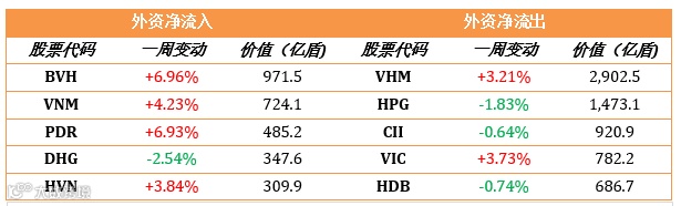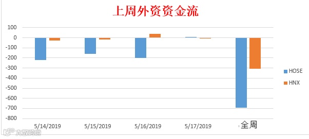 外资延续4个交易日继续抛售,总价值近7000亿盾。周末出现积极信号,在胡志明交易所,外资逆转净流入98.7亿盾。在三大交易所外资仍净流出200亿盾但与近期相比,净流出总额显著下降。