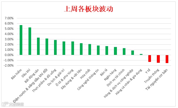 然而,经前一周大幅下跌后,基本上上周市场交易活跃。油气,保险, 房地产,银行等板块涨幅3%至6%。