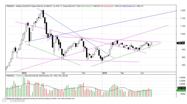 上周结束越南指数越过了980-985点区,但后市将面临更强的阻力区1000点。