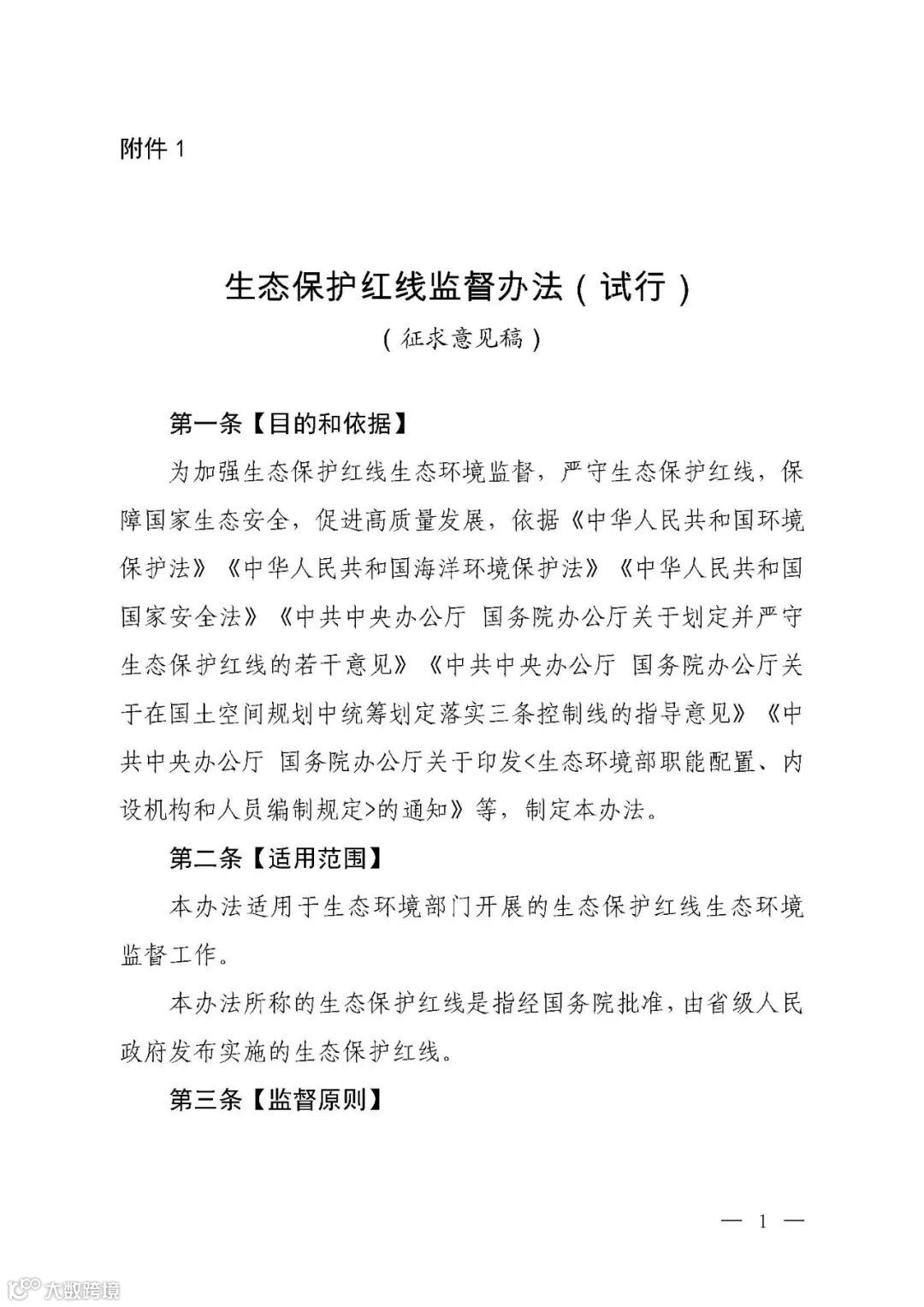 为贯彻落实党中央、国务院决策部署,履行生态保护红线监管职责,规范开展生态保护红线生态环境监督工作,根据《中华人民共和国环境保护法》和有关法律法规要求,我部组织起草了《生态保护红线监督办法(试行)(征求意见稿)》,现公开征求意见(征求意见稿及起草说明可登录我部网站http://www.mee.gov.cn/“意见征集”栏目检索查阅)。