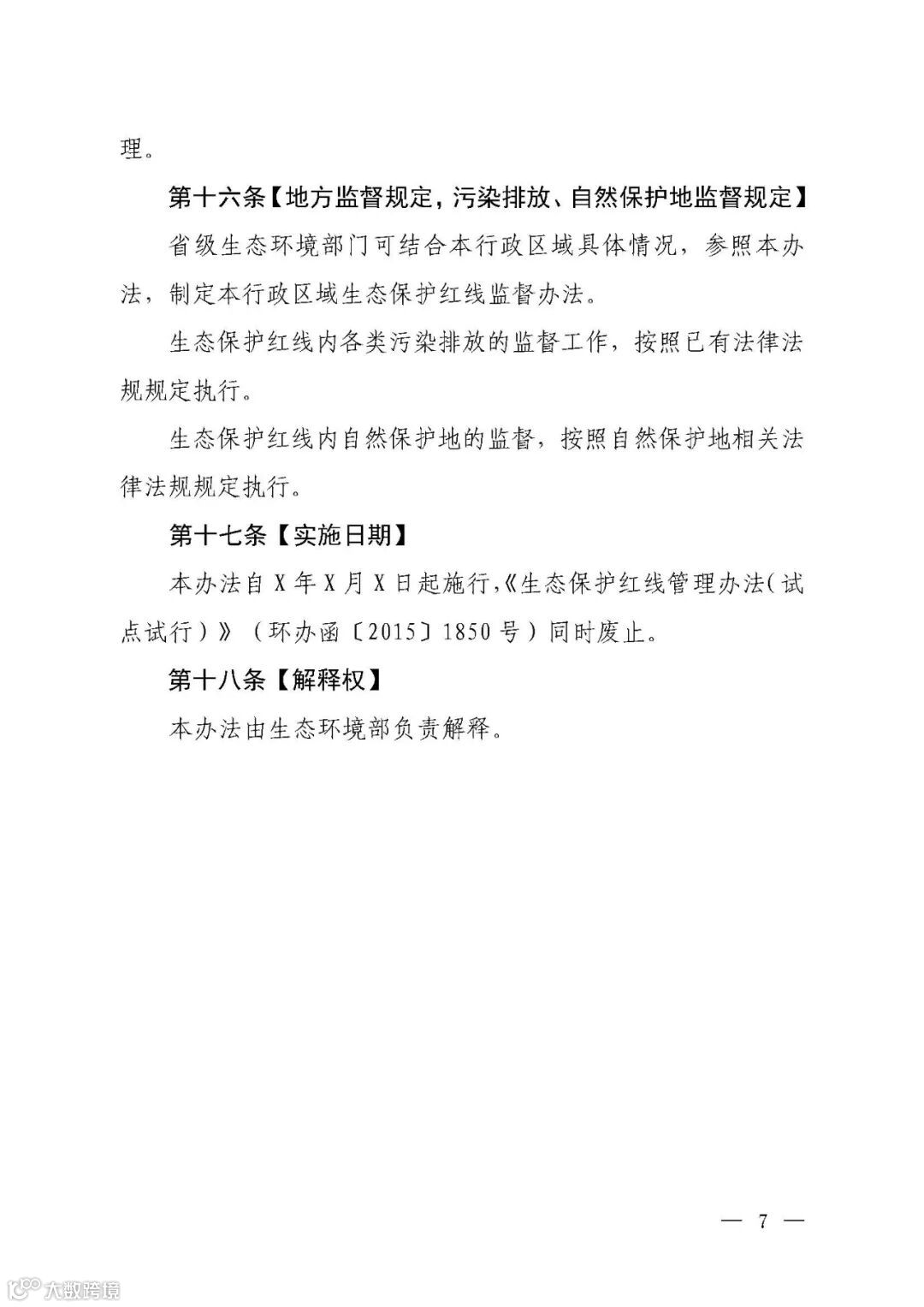 关于公开征求《生态保护红线监督办法(试行)(征求意见稿)》意见的通知