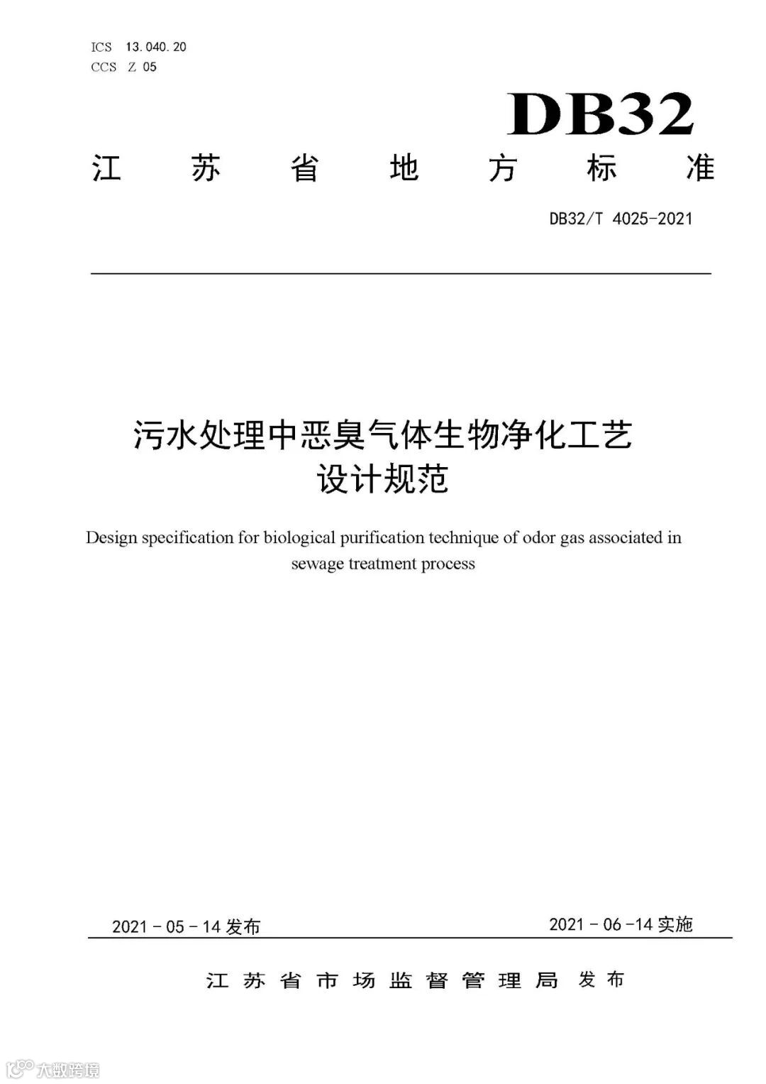 DB32T 4025-2021污水处理中恶臭气体生物净化工艺设计规范
