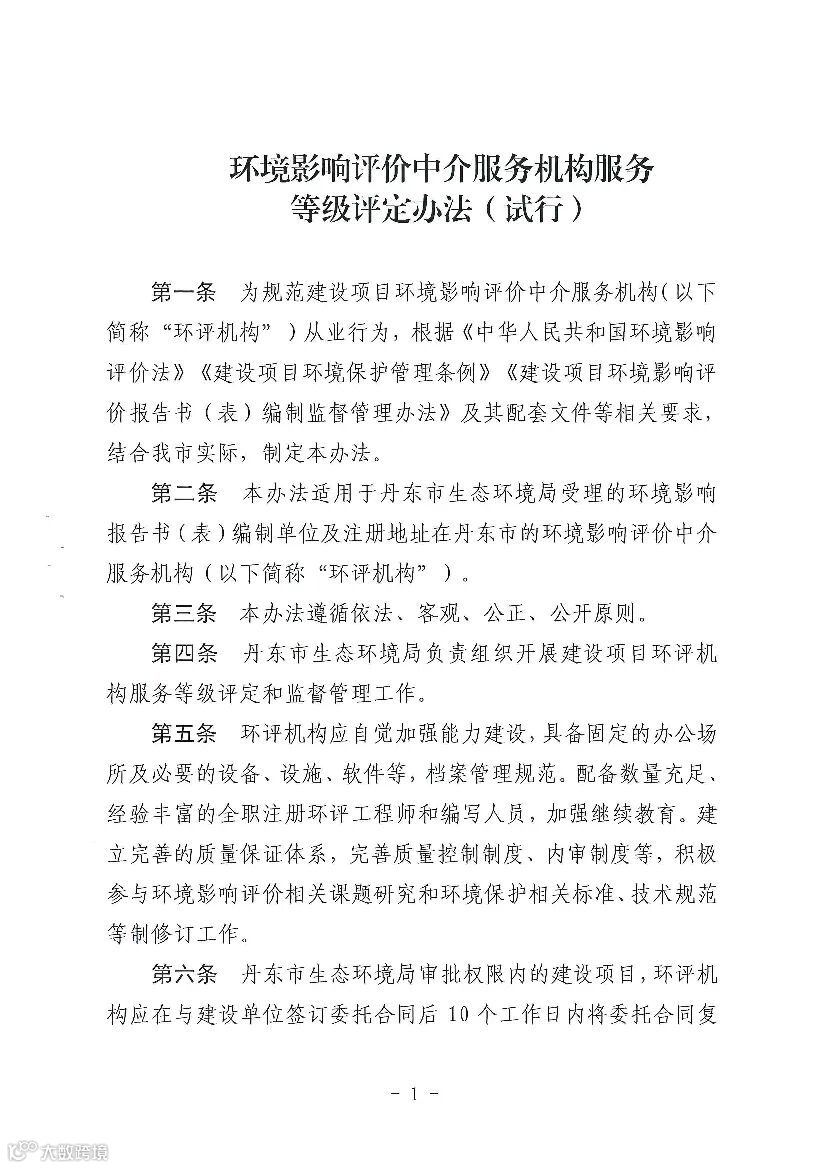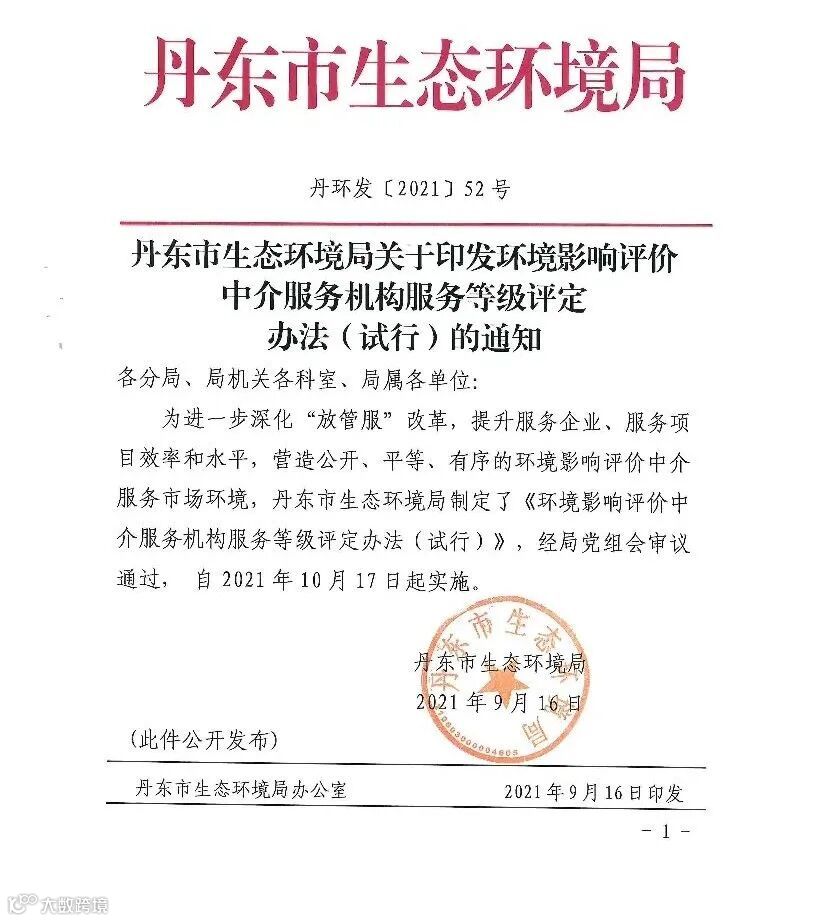 丹环发 〔2021〕52号 关于印发环境影响评价中介服务机构服务等级评定办法(试行)的通知