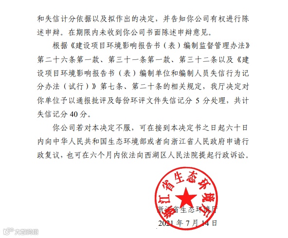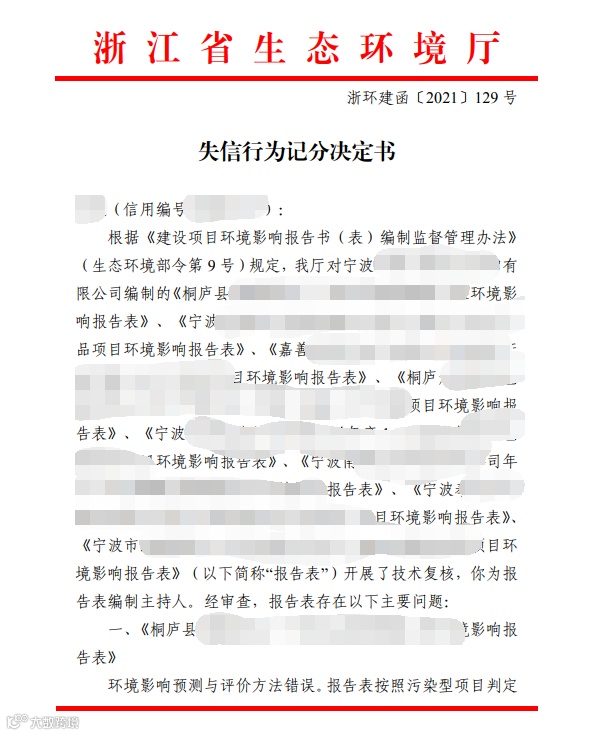 因为报告表问题,环评公司、环评师一次性被扣40分
