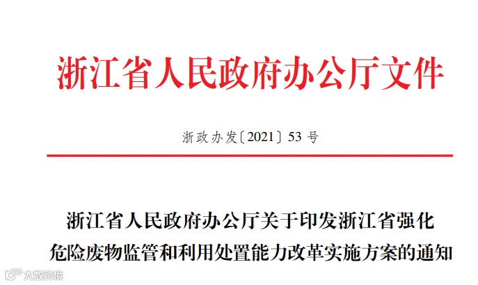 浙江省强化危险废物监管和利用处置能力改革实施方案