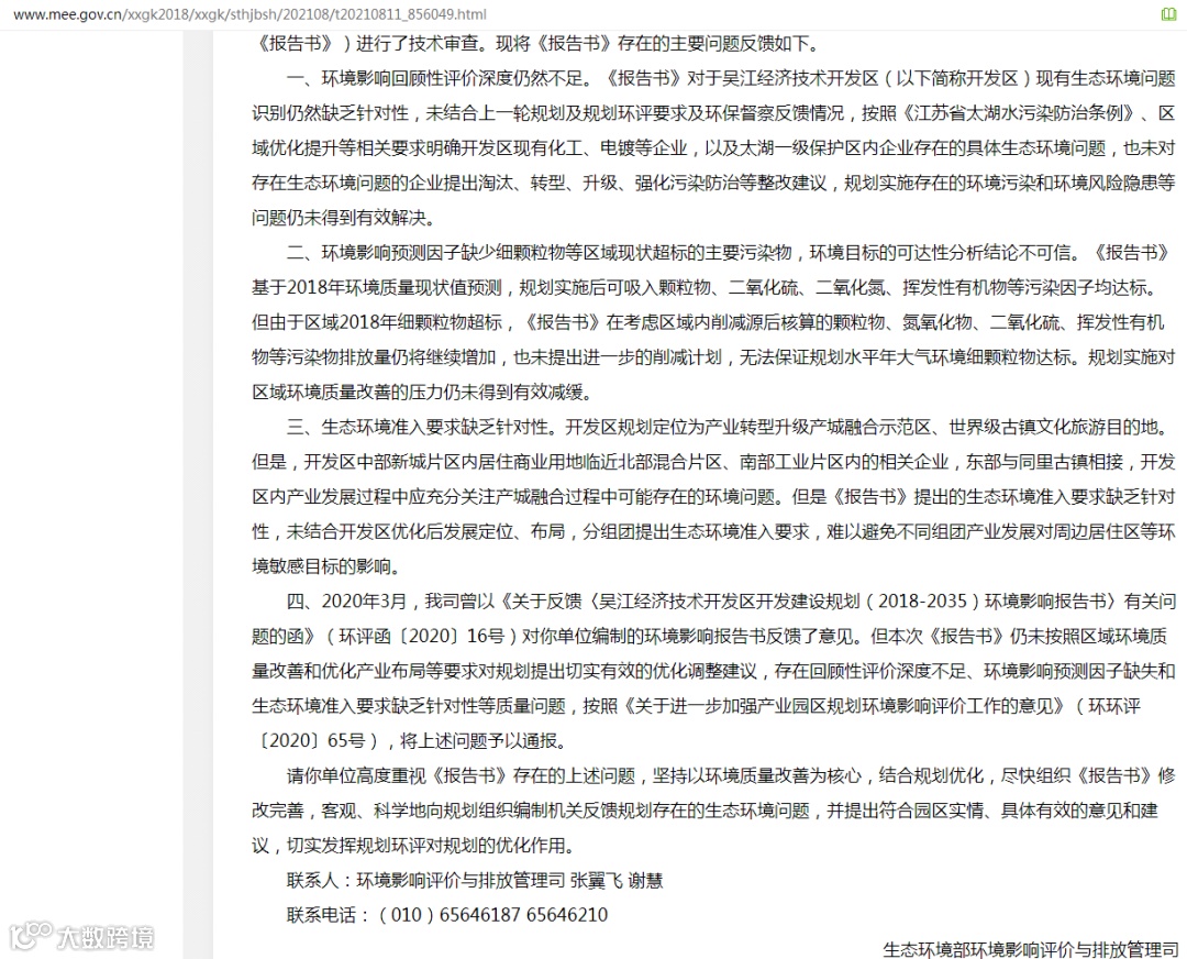 关于反馈《吴江经济技术开发区开发建设规划(2018-2035)环境影响报告书》有关问题的函