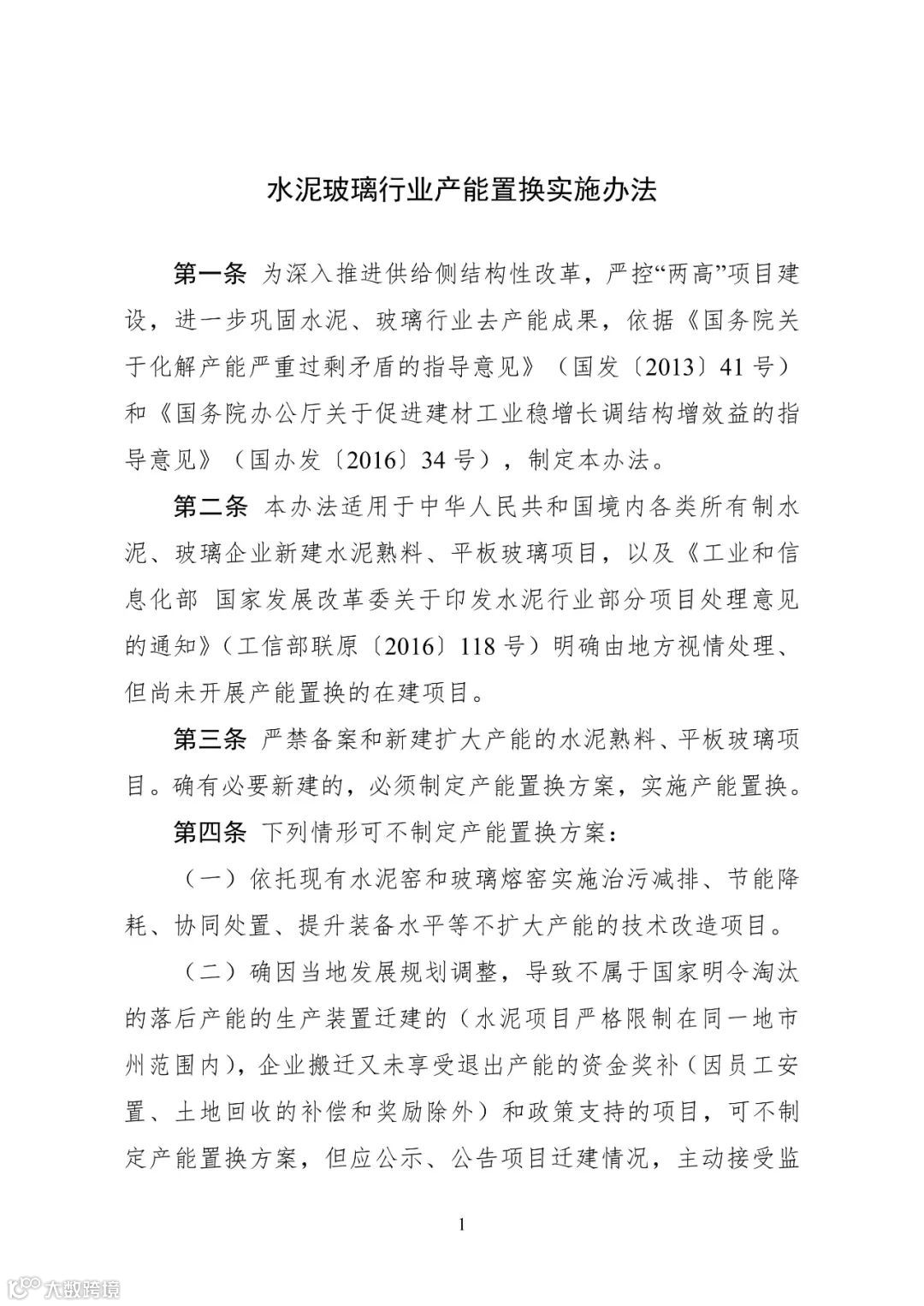 关于印发水泥玻璃行业产能置换实施办法的通知
