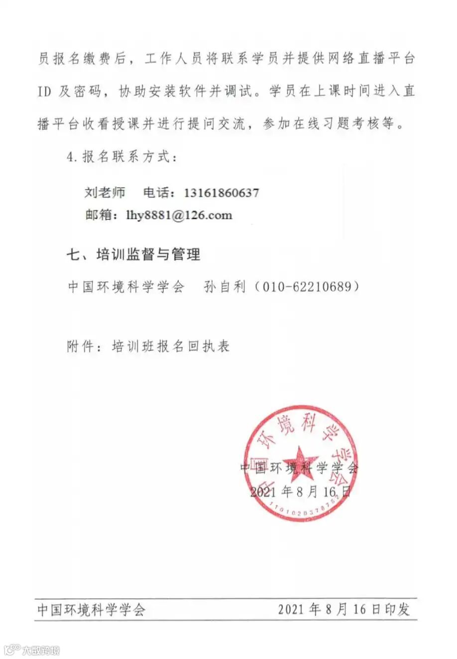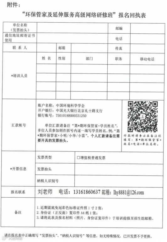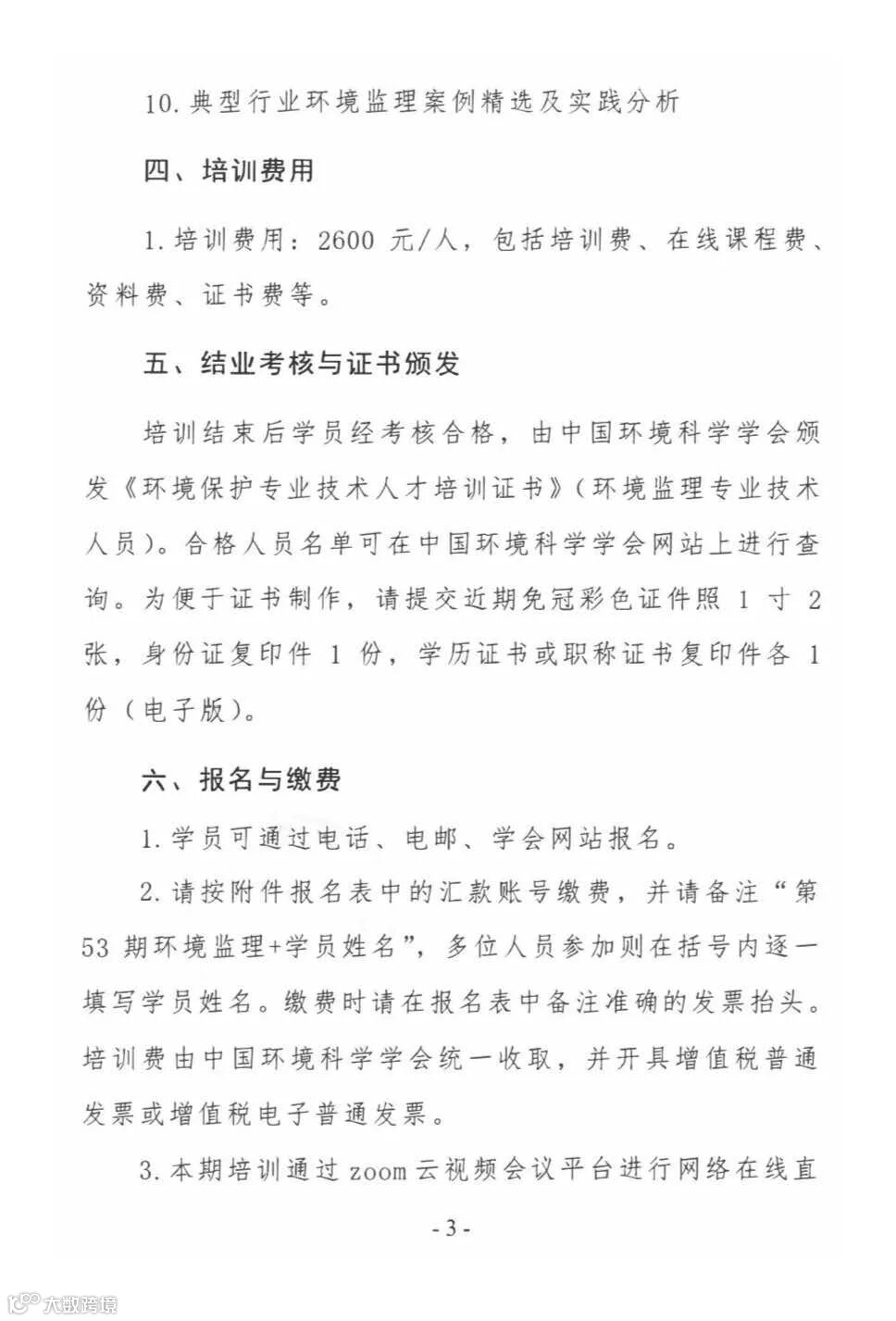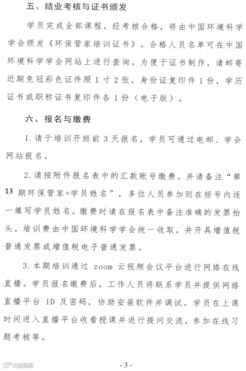 培训费由中国环境科学学会统一收取,并开具增值税普通发票或电子发票。