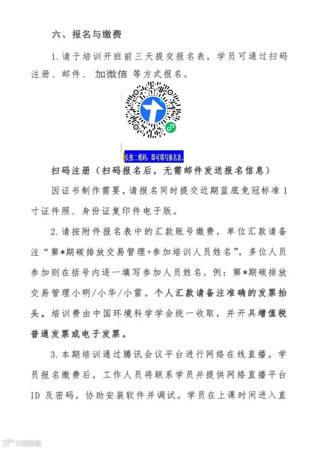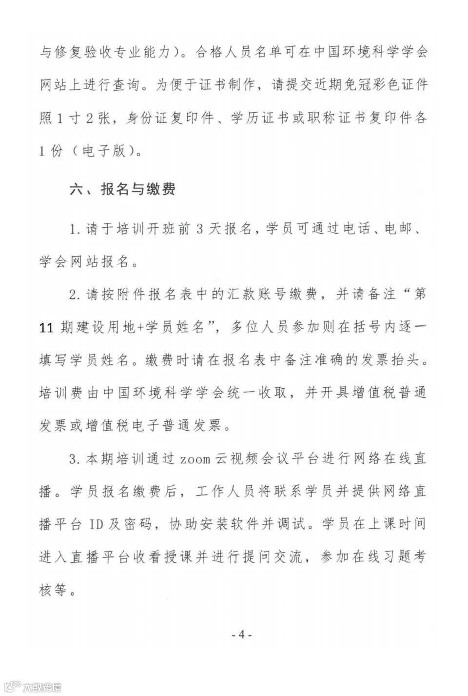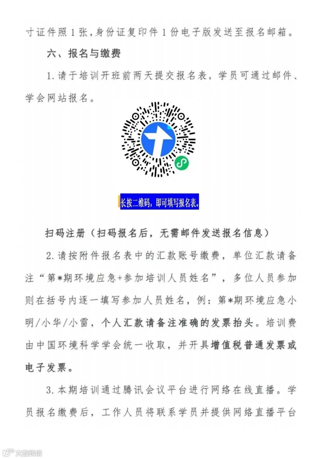 培训费由中国环境科学学会统一收取,并开具增值税普通发票或电子发票。