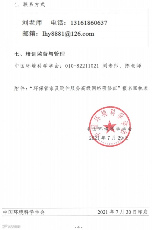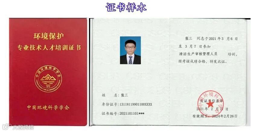 训人员培训结束后,由中国环境科学学会颁发《环境保护专业技术人才培训证书》(清洁生产审核管理人员)。合格人员可在中国环境科学学会网站进行查询。