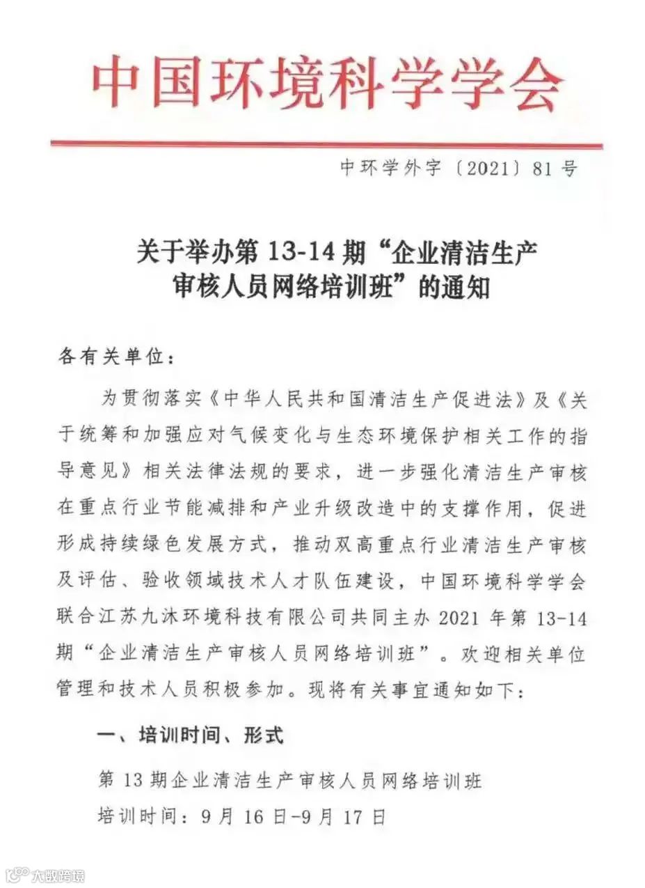 为贯彻落实《中华人民共和国清洁生产促进法》、《清洁生产审核办法》及《清洁生产审核评估与验收指南》相关法律法规的要求,推动清洁生产审核及评估、验收领域技术人才队伍建设,中国环境科学学会联合南京九沐环境科技有限公司共同主办第12期“重点企业清洁生产审核管理人员网络培训班”。欢迎相关单位管理和技术人员积极参加。