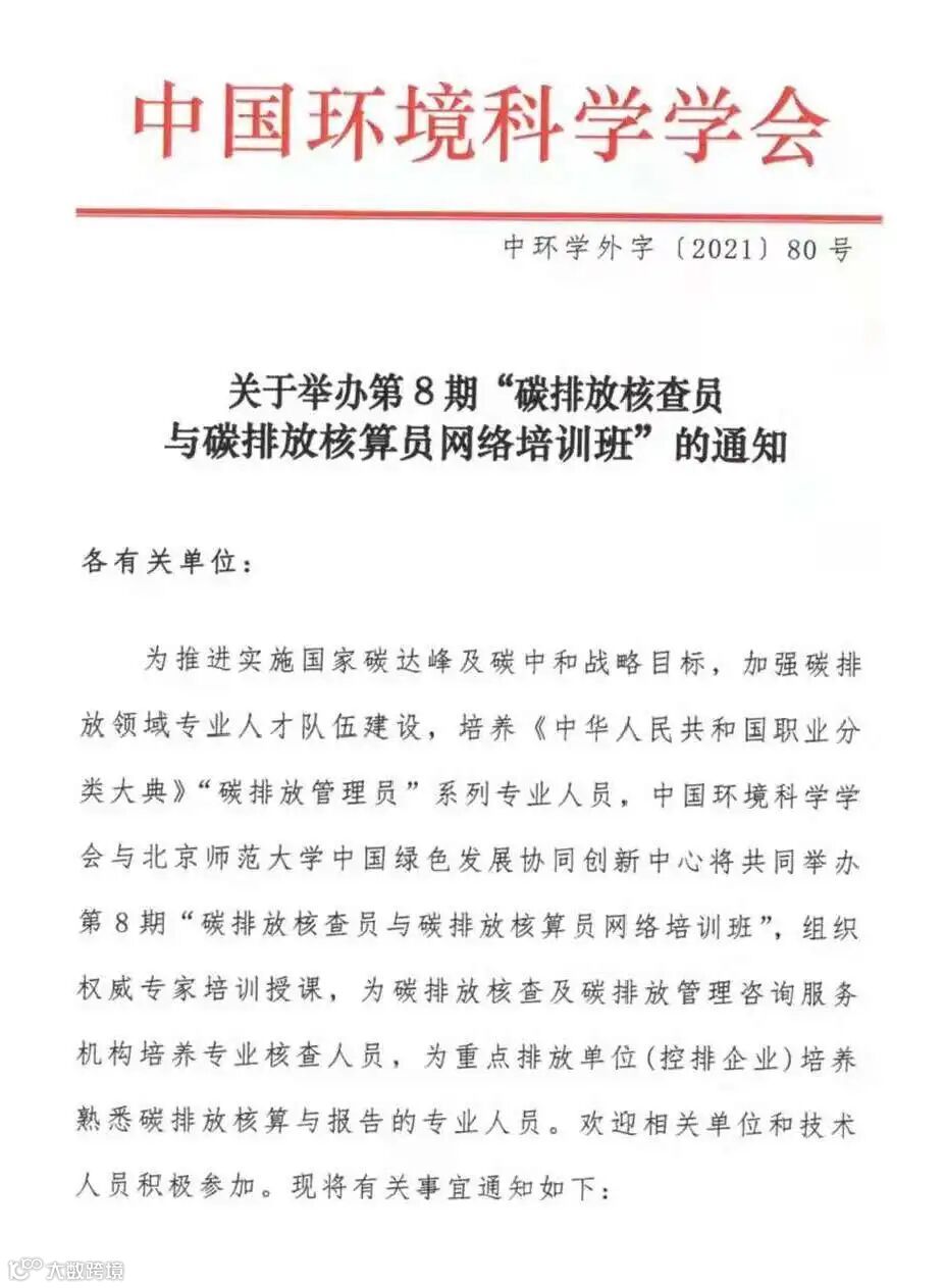 红头文件4:碳排放核查员与碳排放核算员培训