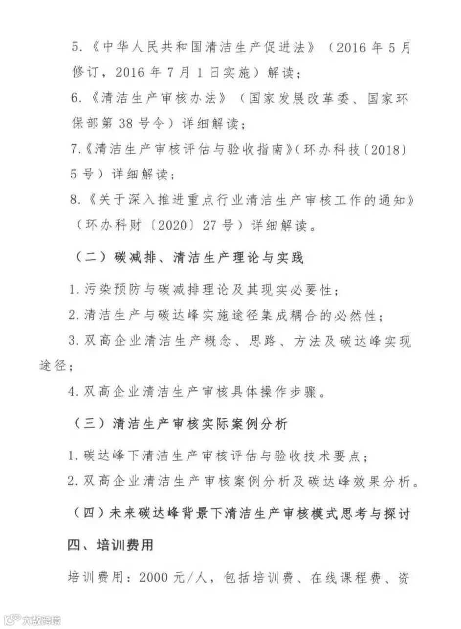 众所周知,国家对清洁生产越来越重视。随着目前碳中和、碳补偿机制的出台,强制性清洁生产企业的数量也将会越来越多,作为第三方环保公司在清洁生产方面会有更多的商机。另外,本次培训会重点讲到审核新模式,新标准,新思路的相关内容。相信通过培训,对大家在清洁生产审核方面的实务工作将会有很大助益。