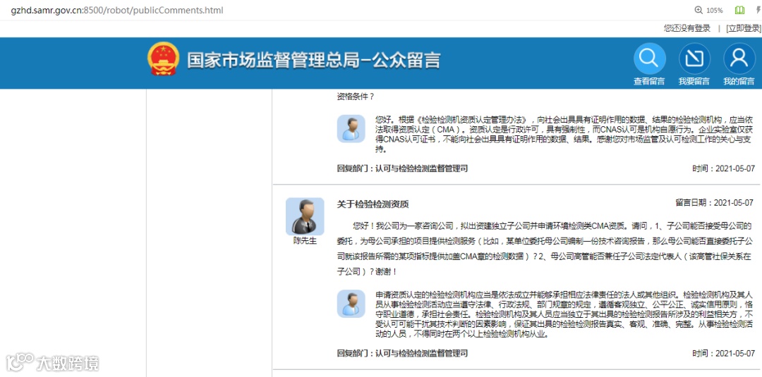 回复部门:认可与检验检测监督管理司