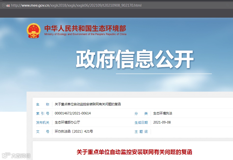 你厅《关于总磷总氮重点行业企业自动监控安装联网有关问题的请示》(粤环报〔2021〕53号)收悉。经研究,函复如下。