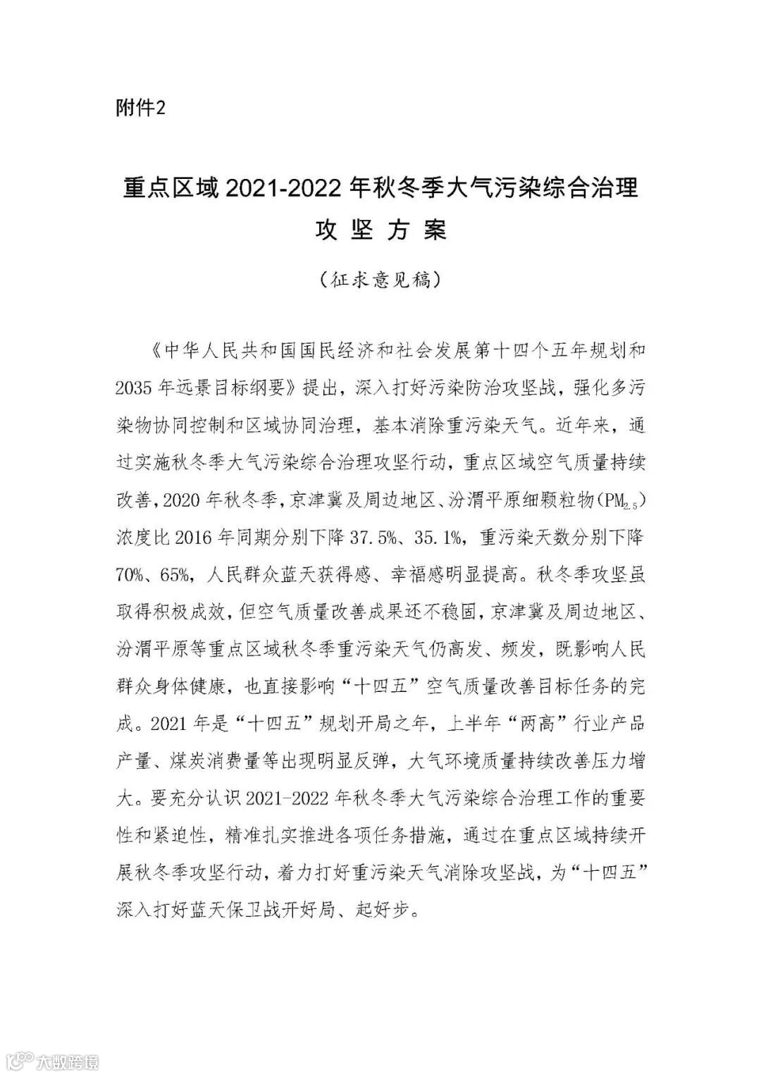 2.重点区域2021-2022年秋冬季大气污染综合治理攻坚方案(征求意见稿)