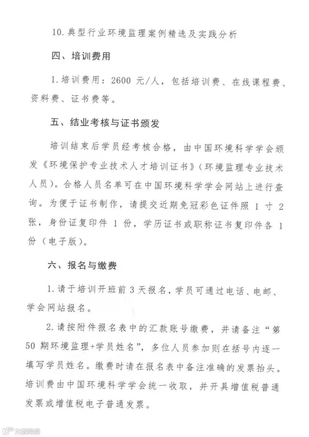 1、参加完规定的线上培训课程,经考核合格后,由中国环境科学学会颁发证书。
