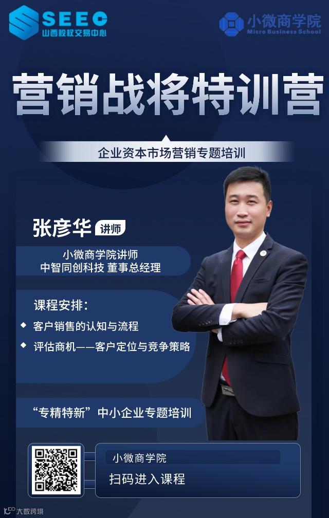 张彦华:小微商学院讲师、中智同创科技(山西)有限公司 董事总经理、高级企业管理咨询师、营销管理实战专家12年中小企业、营销策划、团队建设、管理咨询、投融资辅导、商业模式升级、招商融资实战落地经验。亲自研发 《陆海空超级舰队营销方案》服务企业1000家以上,全国受训学员10万人次以上,曾任上市公司合伙人和企业高管,带领团队一年创造近亿元的销售业绩。
