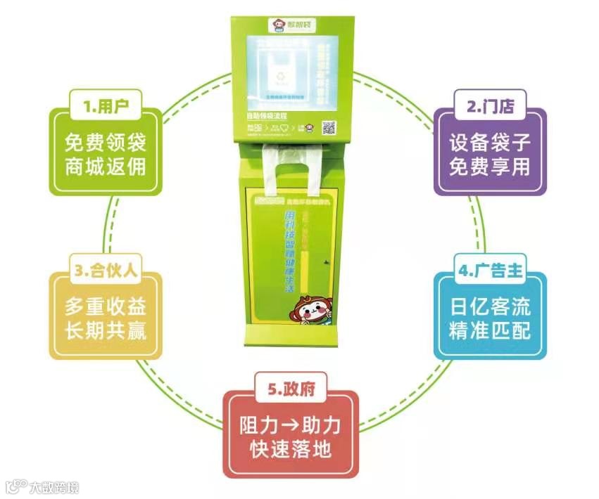 用户免费领取环保袋、合伙人赚取收益,安装简单、专业团队维护