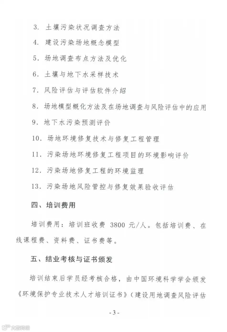 培训结束后学员经考核合格,由中国环境科学学会颁发《环境保护专业技术人才培训证书》(环境监理专业技术人员)。合格人员名单可在中国环境科学学会网站上进行查询。为便于证书制作,请提交近期免冠彩色证件照1寸2张,身份证复印件1份,学历证书或职称证书复印件