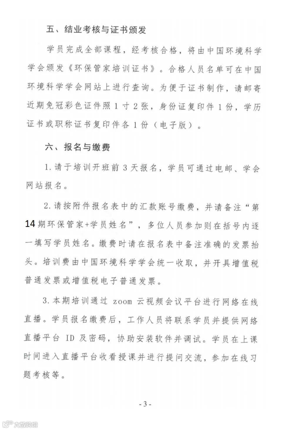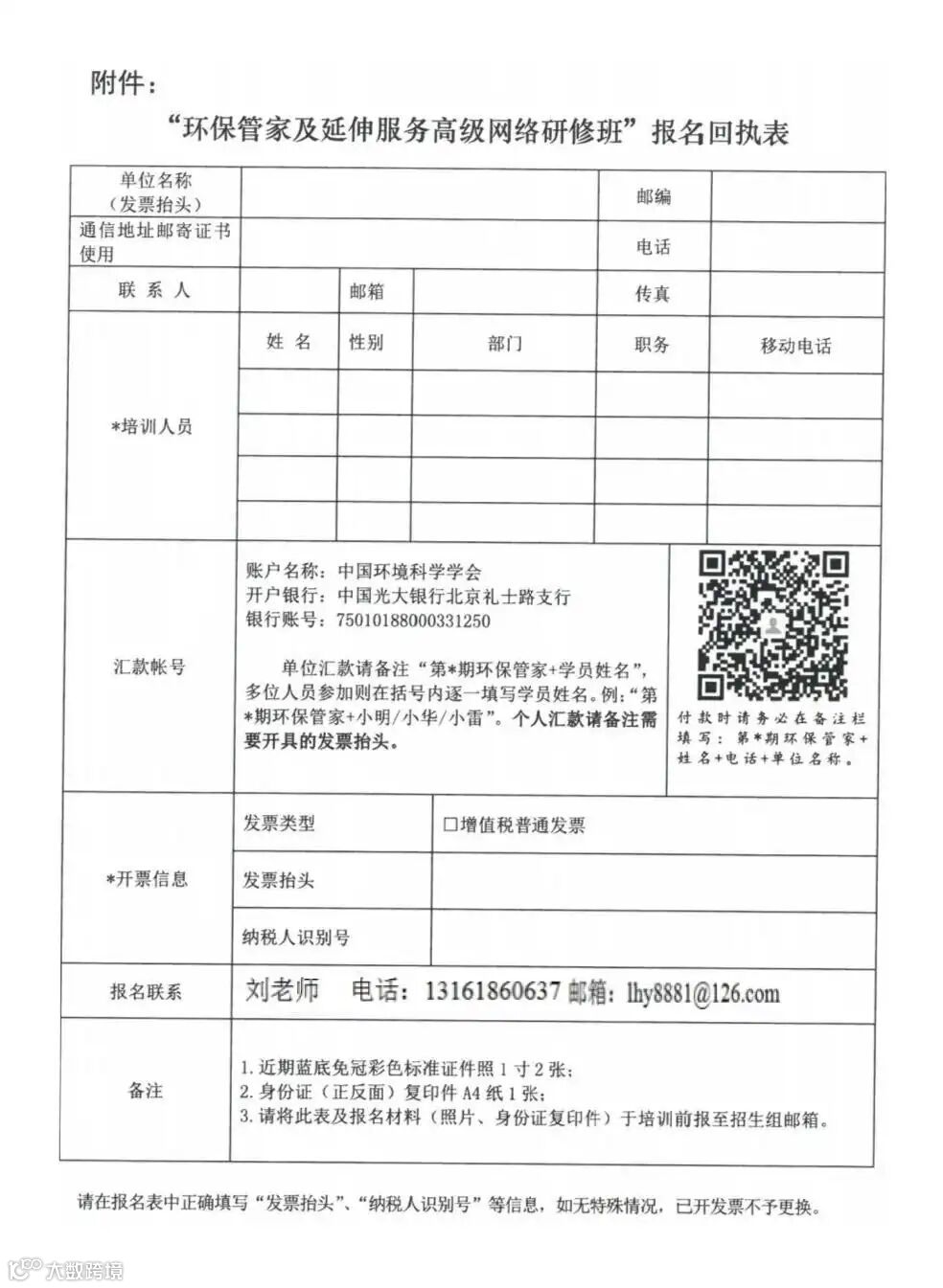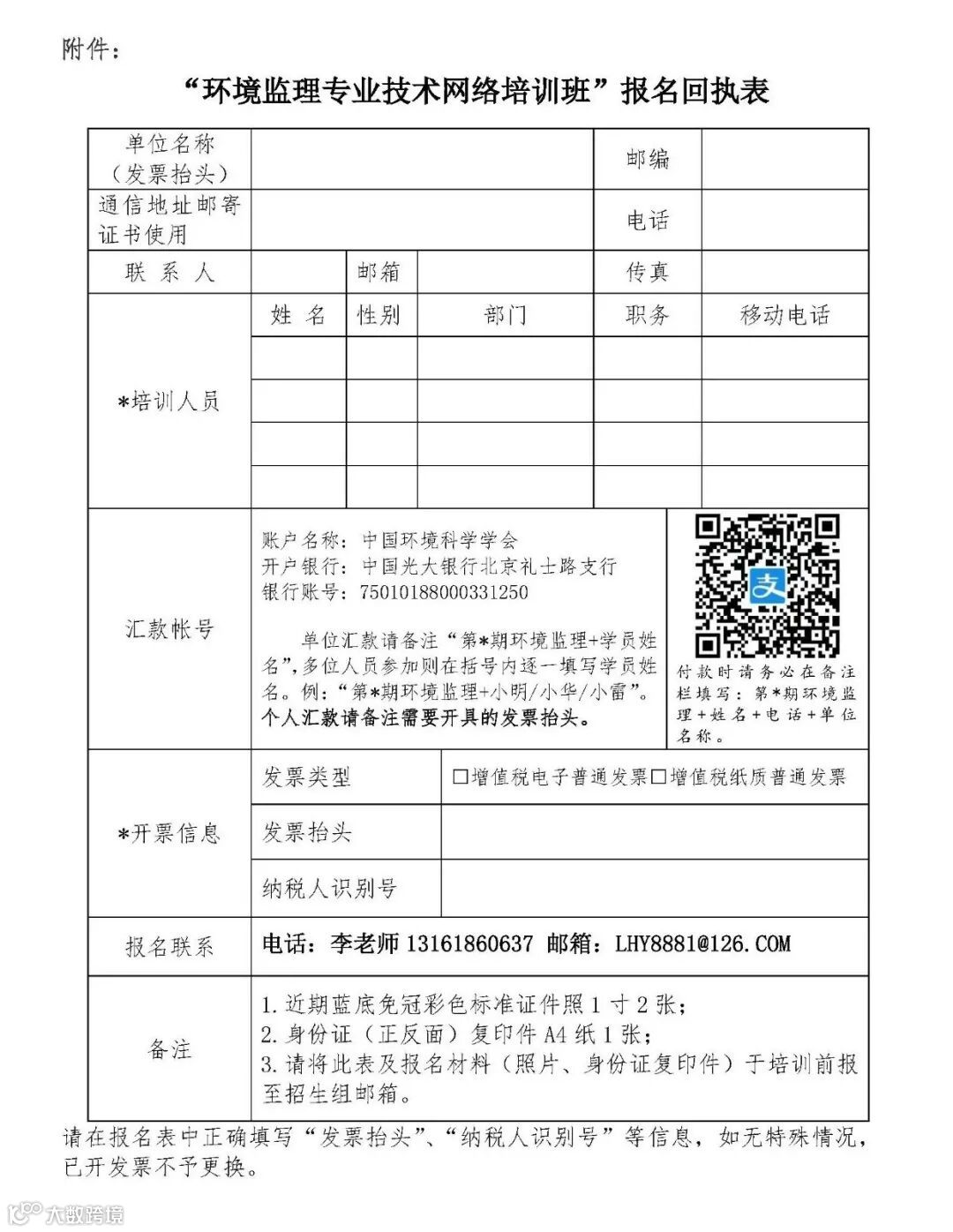 2.请按附件报名表中的汇款账号缴费,并请备注“第53期环境监理+学员姓名”,多位人员参加则在括号内逐一填写学员姓名。缴费时请在报名表中备注准确的发票抬头。培训费由中国环境科学学会统一收取,并开具增值税普通发票或增值税电子普通发票。