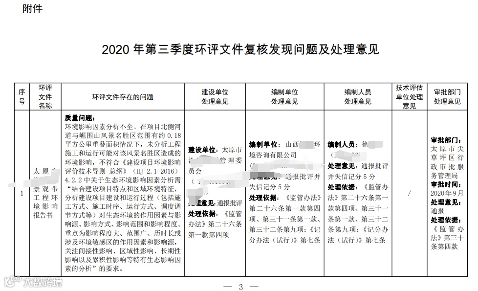 附件:2020年第三季度环评文件复核发现问题及处理意见