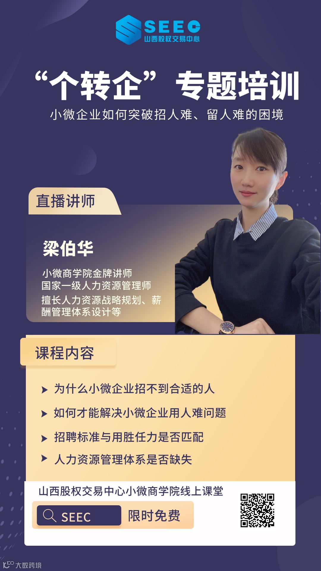 直播预告 |“个转企”专题培训之小微企业如何突破招人难、留人难的困境