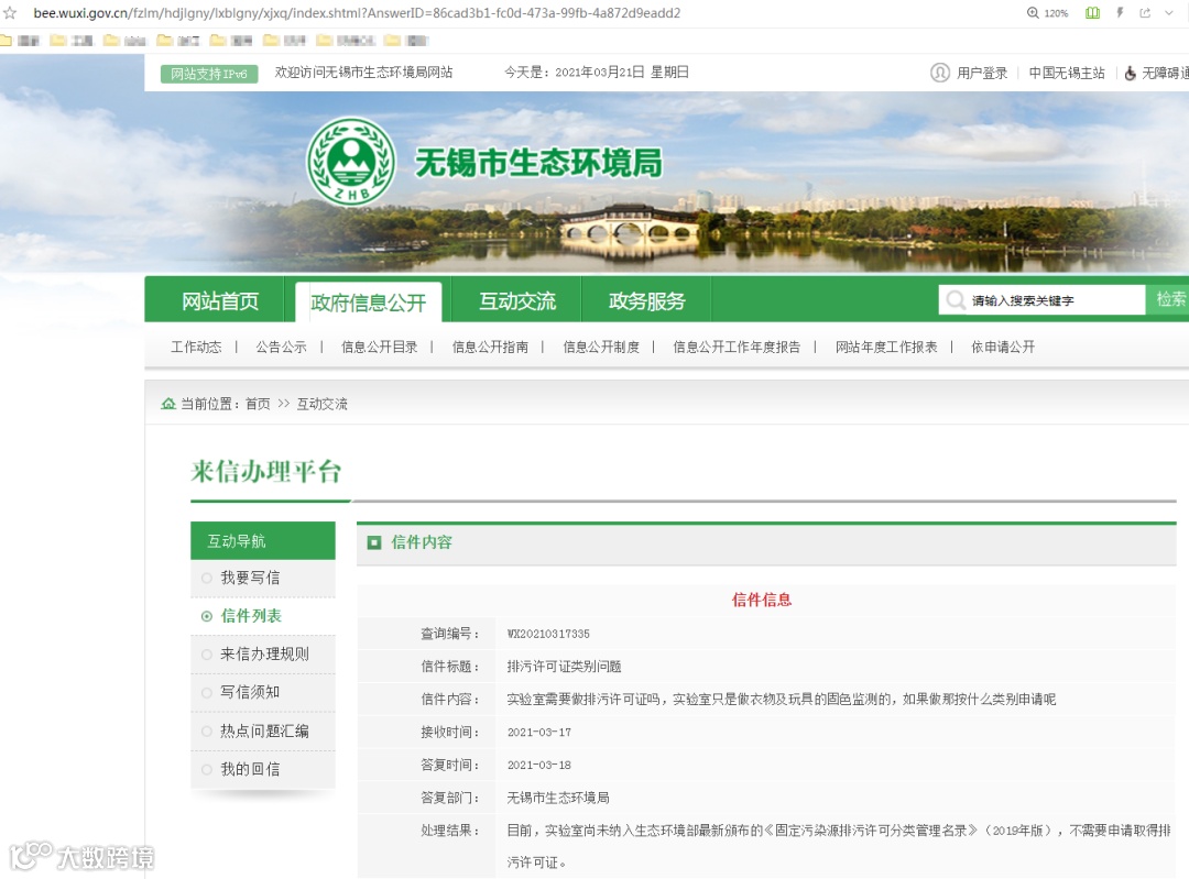 | 信件内容: | 实验室需要做排污许可证吗,实验室只是做衣物及玩具的固色监测的,如果做那按什么类别申请呢 | ||