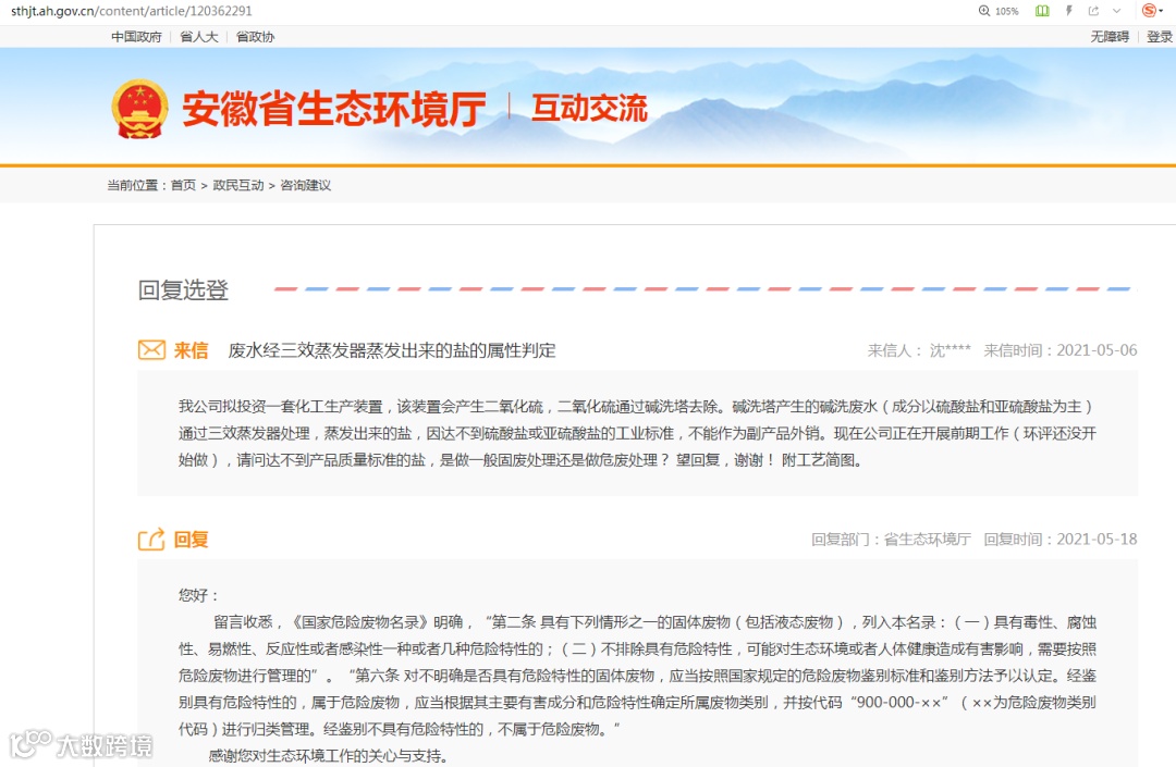 我公司拟投资一套化工生产装置,该装置会产生二氧化硫,二氧化硫通过碱洗塔去除。碱洗塔产生的碱洗废水(成分以硫酸盐和亚硫酸盐为主)通过三效蒸发器处理,蒸发出来的盐,因达不到硫酸盐或亚硫酸盐的工业标准,不能作为副产品外销。现在公司正在开展前期工作(环评还没开始做),请问达不到产品质量标准的盐,是做一般固废处理还是做危废处理?望回复,谢谢!附工艺简图。