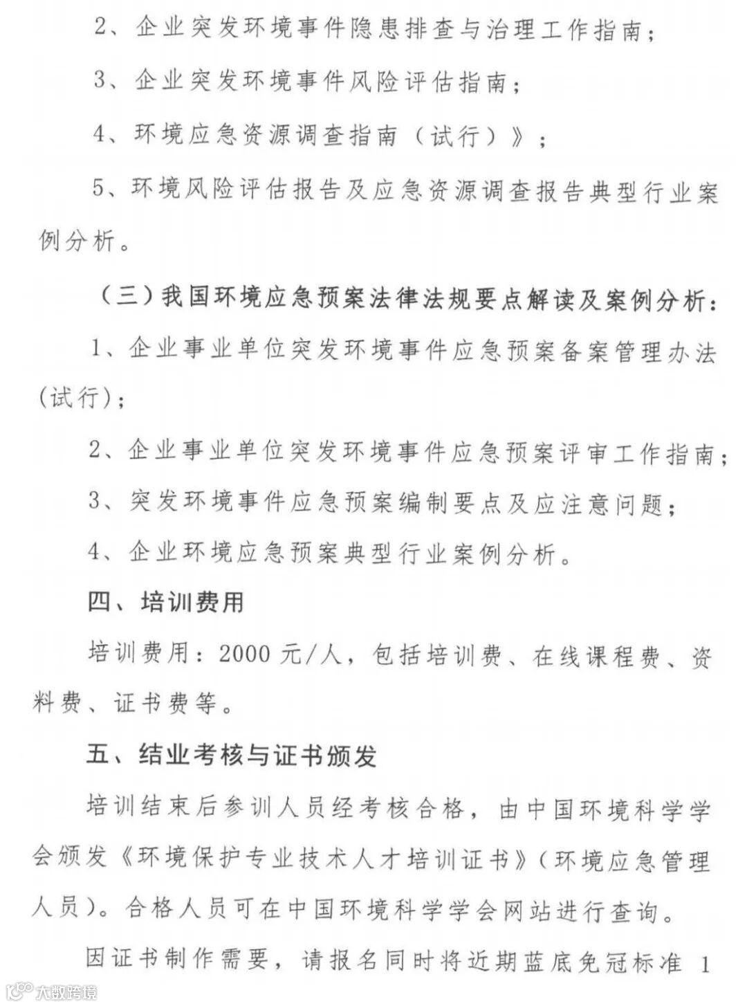 1、参加完规定的线上培训课程,经考核合格后,由中国环境科学学会颁发证书。