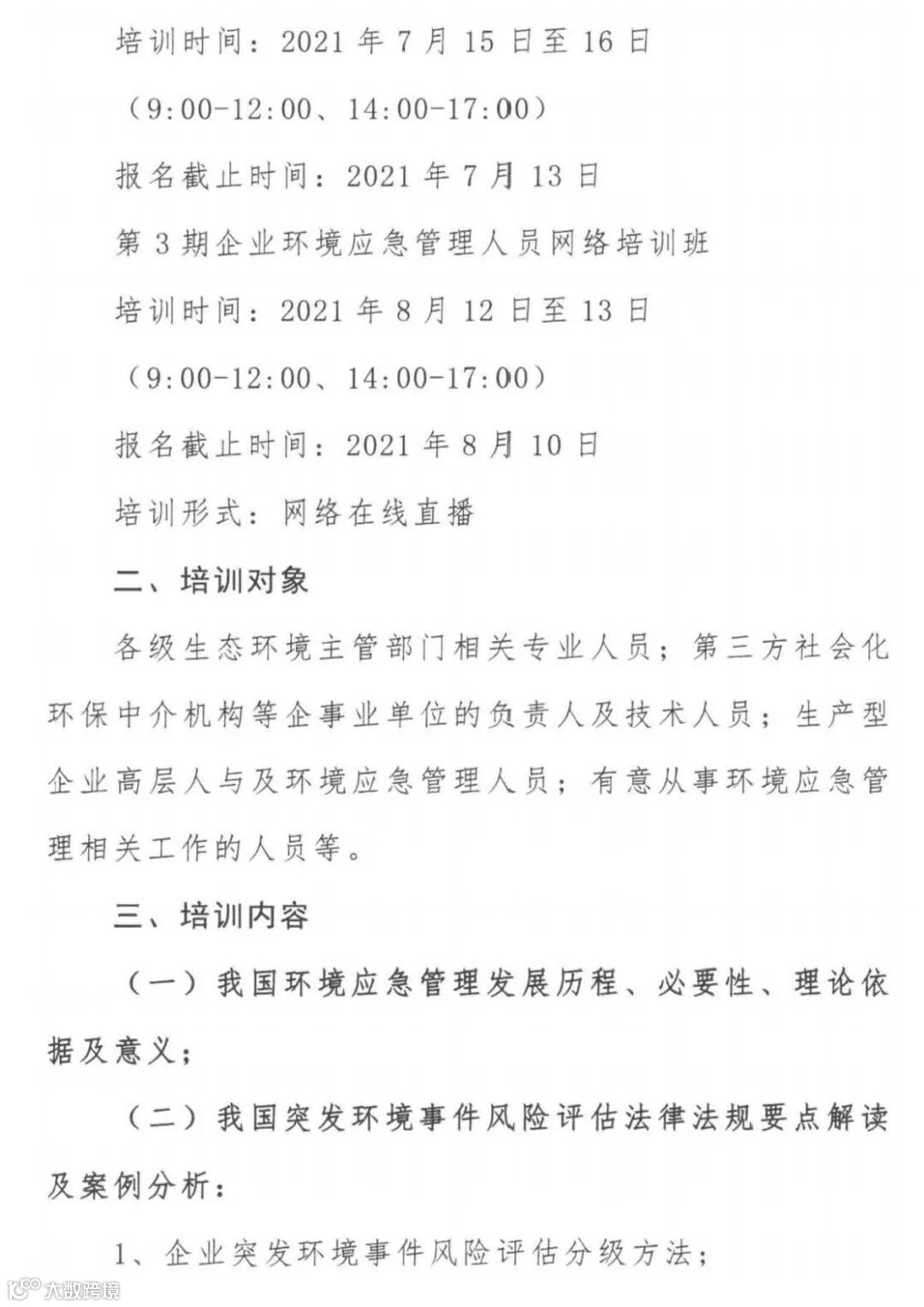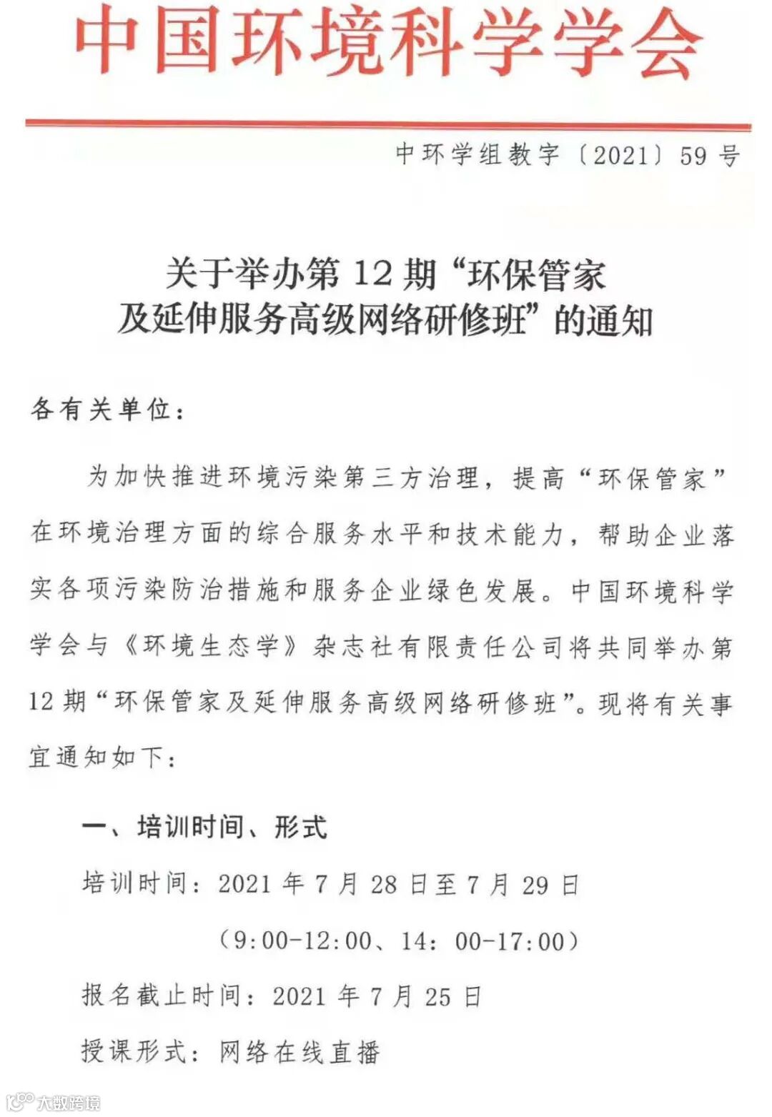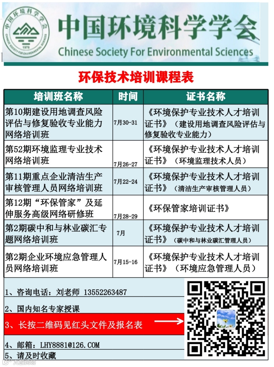 为进一步提高全国环保管理人员、环保从业人员和企业环保技术人员的业务能力和水平,积极推动生态环境保护人才队伍建设,现拟发布我会2021年7月培训计划如下: