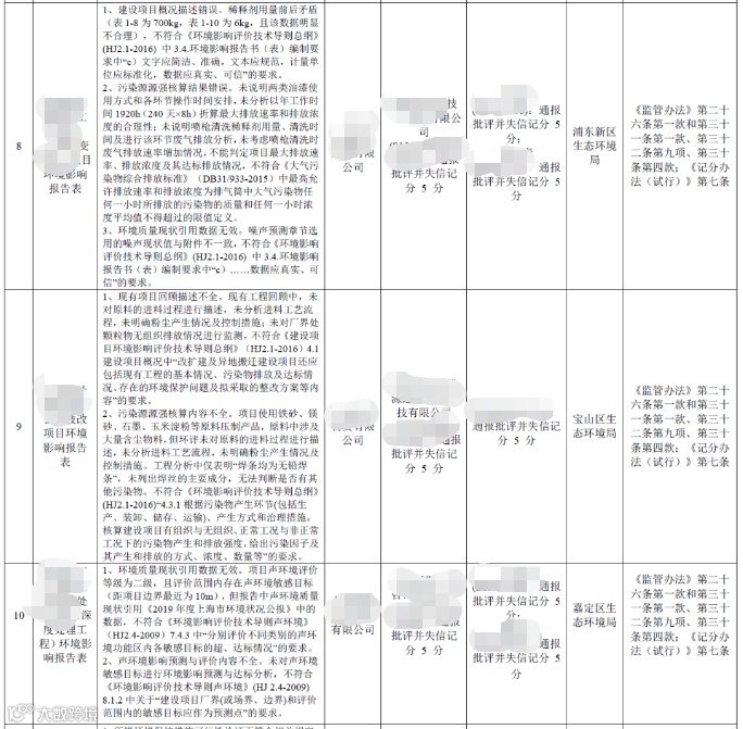 上海市生态环境局关于2021年第一批环评文件复核发现问题及处理意见的通报