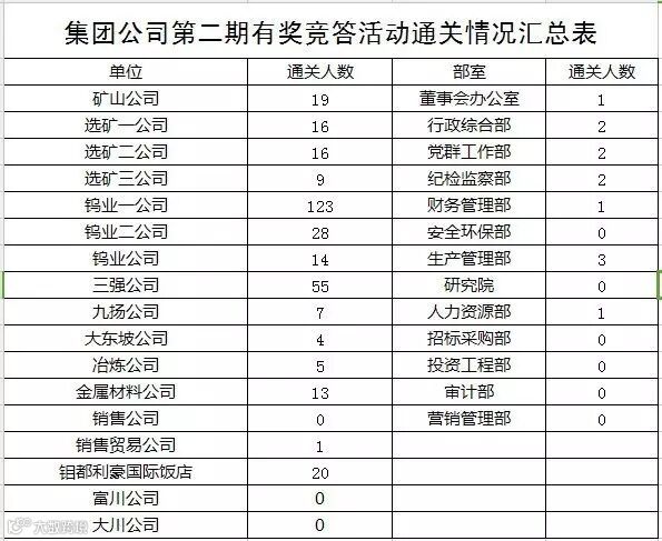附:第二期竞答活动各单位、各部室通关情况及通关人员名单