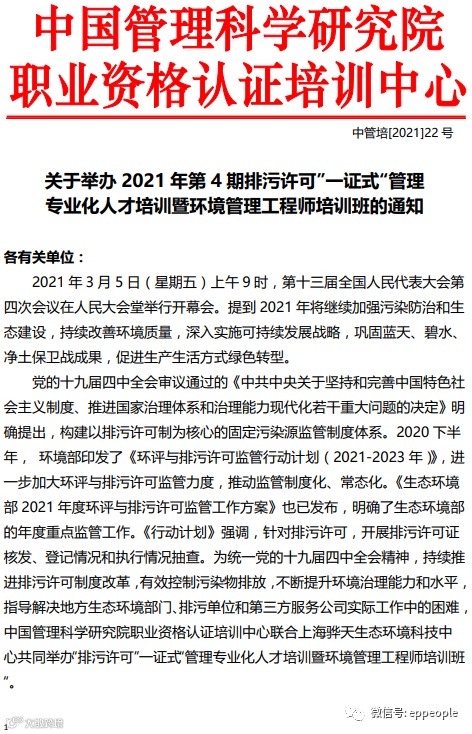 红头文件3:排污许可”一证式“管理专业化人才培训暨环境管理工程师培训班的通知