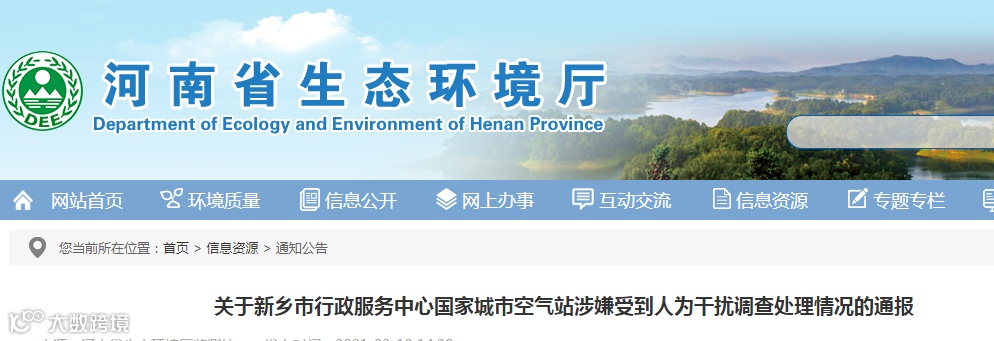 2021年3月,生态环境部通报我省新乡市行政服务中心国家城市空气站(以下简称“国控站”)受到雾炮车喷淋干扰,要求严肃查处。接到函件后,厅领导高度重视,作出重要批示,责成新乡市生态环境局立即组织对国控站受到人为干扰事件开展调查整改,并依法依规对相关责任人进行查处追责。为深刻汲取教训,严守监测质量底线,确保监测数据“真、准、全”,真实客观反映区域环境空气质量,科学有效指导大气污染防治攻坚工作,现将有关情况通报如下: