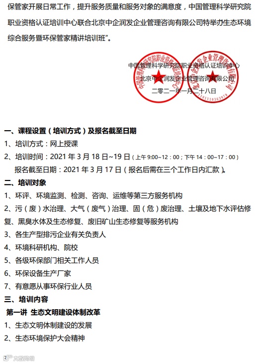 红头文件2:排污许可”一证式“管理专业化人才培训暨环境管理工程师培训班的通知