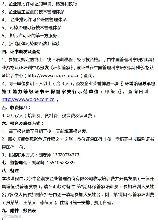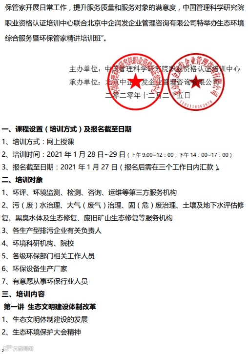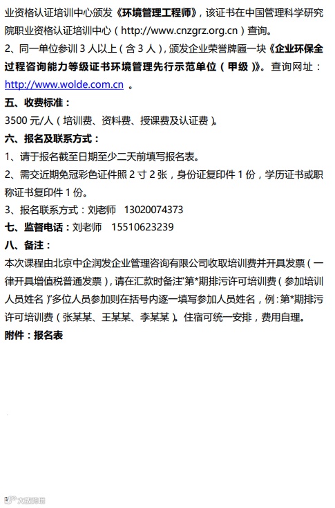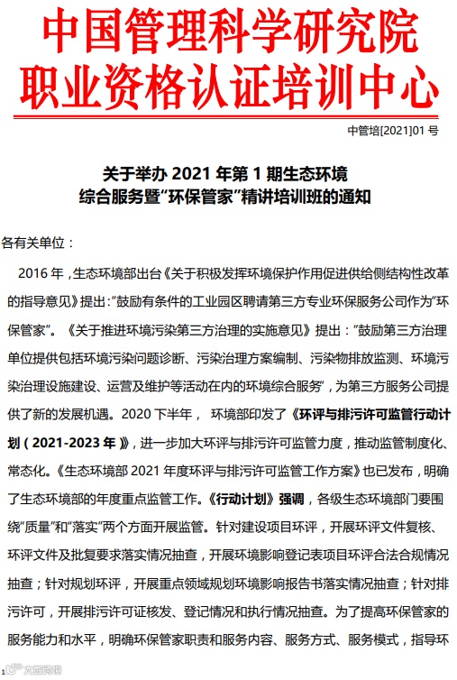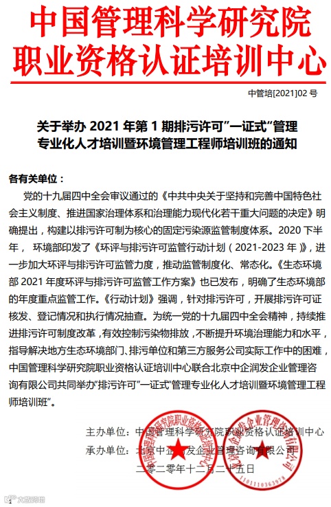 红头文件2:排污许可”一证式“管理专业化人才培训暨环境管理工程师培训班的通知