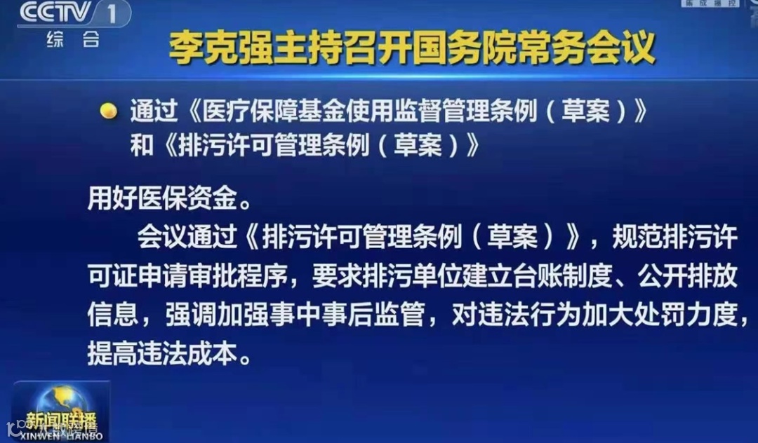 通过《医疗保障基金使用监督管理条例(草案)》和《排污许可管理条例(草案)》